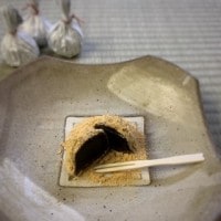 本蕨粉とこし餡を併せて煉り上げた口ほどけ良い蕨もちの中には、黒糖の蜜を吉野本葛と寒天作った柔らかな吉野羹を入れております。