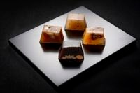 『ドライフルーツ』一番人気の百果です。イチジク、パイン、トマト、ミカン、生姜のドライフルーツにレモンリキュールのさわやかな羊羹を流し合わせました。